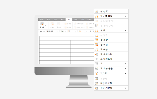 • 사용자의 설정에 따라 다양한 크기와 형태의 표(테이블)를 삽입할 수 있습니다.