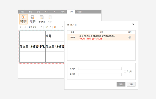• 사용자가 작성한 문서에 웹 접근성에 위배되는 내용이 있는지 확인하여 수정할 수 있습니다.